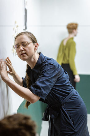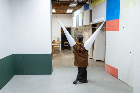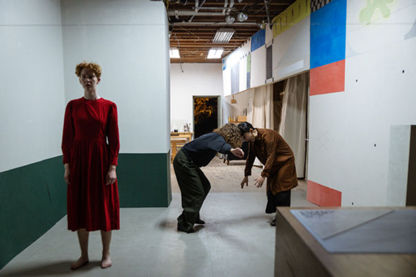 THE PASSERBY, or not __ even __ anything is a silent twelve track performance album inspired by Oskar Schlemmer’s Gallery Paintings. The piece is a combination of choreography, pedestrian movement and highly technical tableaus that interfere with the normal time signatures that audiences' attentions are accustomed to in the theater. Constructed through spacial-izations of Oskar Schlemmer’s highly formal paintings, and experimental compositions in the electromagnetic energy of the performers, the album transforms every time it is performed through a series of rigorous chance operations.