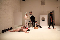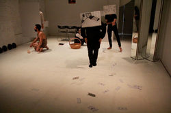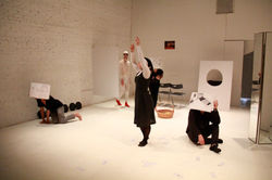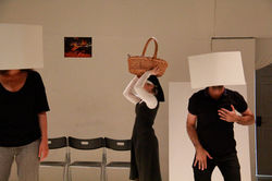 A mystical romance, a ballet about human faced with the unknown and the awe, and the fear, and the mystical longing for union with that which is beyond understanding, be it death, exotic far off places, chance, or an intergalactic being. Herds longing for the past, what happens with the spaces that held their previous lives? Do spaces haunt people or do people haunt spaces? A brain-washing spectacular! Subliminal messages! Headphones! A caveman! An alien! A nun! A toothless woman with a lottery ticket! Fruit! Crowds going mad! A ghost! And much more! Stay tuned!